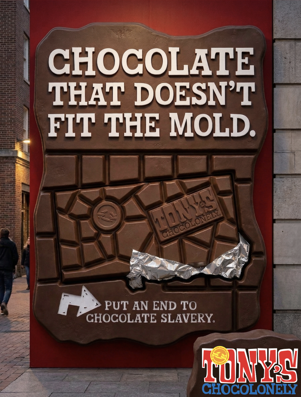 Reframe every chocolate purchase as a small act of activism, using bold, attention-grabbing messaging that makes choosing Tony’s Chocolonely feel like choosing a more ethical, impactful way to indulge.